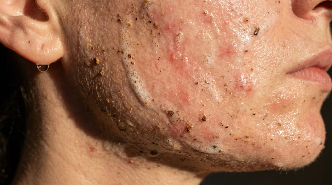 You lean over the porcelain sink, warm water pooling in your cupped hands. You reach for that familiar gritty tube, the scrub feeling like rough, wet sand against your fingertips. Next comes the foaming salicylic acid wash, carrying its faint, medicinal sharpness. You rub the mixture into your cheeks in tight, determined circles. When you finally pat your face dry, your skin feels incredibly tight, stinging slightly, almost glass-like to the touch. You might think that squeaky, taut sensation means the breakouts are finally losing the battle. But that tight, burning feeling is not a victory. It is an alarm bell.